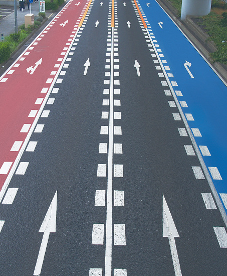 수성/속건형 차선, 유성형 차선, 친환경 내/외부용, 미끄럼방지, 자전거도로에 적용